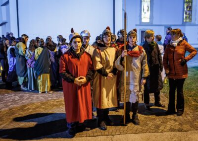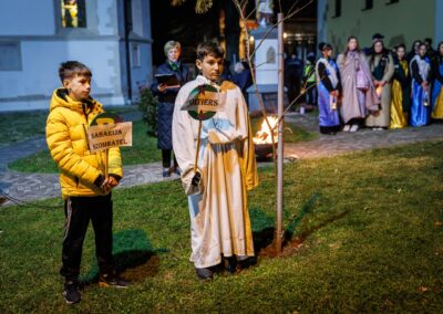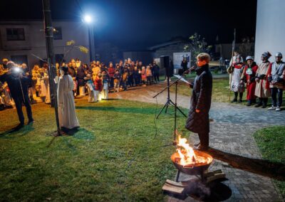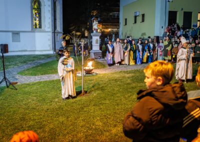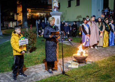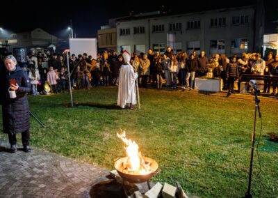 Po završetku procesije okupljeni su poslušali kratki životopis sv. Martina, u kojem je posebno istaknuta njegova posvećenost pomaganju onima u potrebi. Vrhunac događaja bila je scenska prikaz sv. Martina kako reže svoj plašt i daruje ga siromahu, snažan podsjetnik svima na važnost dijeljenja i ljubavi prema bližnjemu.